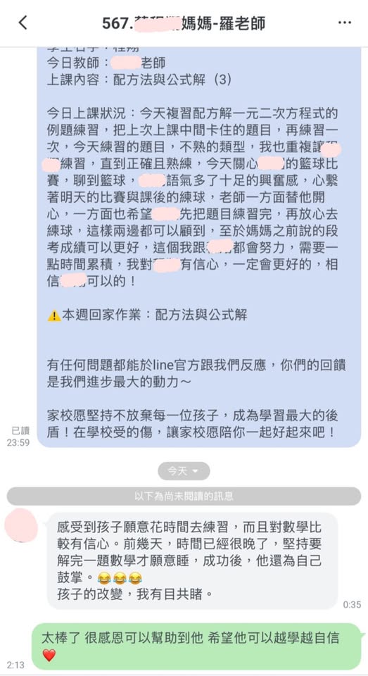 有位家長很可愛的說:「家教苑的英文家教是一號乾媽,數學家教是二號乾媽!」我們聽了真的又暖又感動💝家教苑的每位老師都用「乾媽級」的愛與耐心陪伴孩子成長~